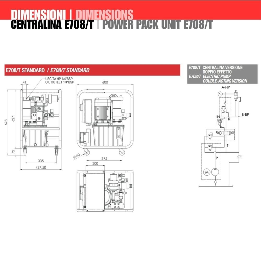 Le centraline a motore elettrico ad alta pressione con pompa a pistoni assiali bistadio (BP 60 bar – HP 700 bar) sono state studiate per adattarsi al meglio a tutte le applicazioni oleodinamiche alle chiavi dinamometriche o attrezzi idraulici a semplice e doppio effetto grazie alle dimensioni ed al peso contenuto.